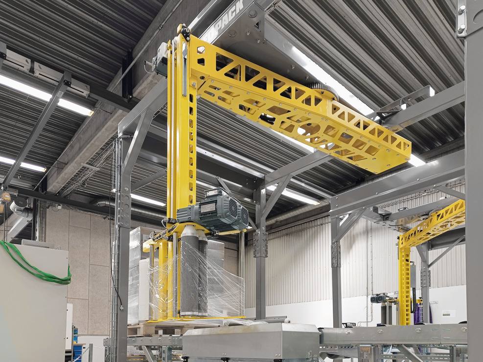 Choose this stretch wrapper for your end of line production to ensure a streamlined workflow from your automatic palletising. The stretch wrapper’s rotating arm wraps the film around the pallet. It is highly efficient and features easy and user-friendly controls.