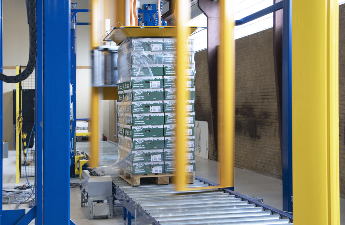 Choose this stretch wrapper for your end of line production if you want to ensure a streamlined workflow from your automatic palletising. The stretch wrapper’s rotating arm wraps the film around the pallet. It is highly efficient and features easy and user-friendly controls.