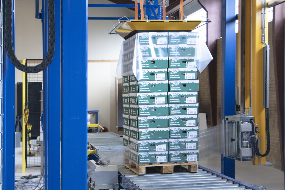 Choose this stretch wrapper for your end of line production if you want to ensure a streamlined workflow from your automatic palletising. The stretch wrapper’s rotating arm wraps the film around the pallet. It is highly efficient and features easy and user-friendly controls.